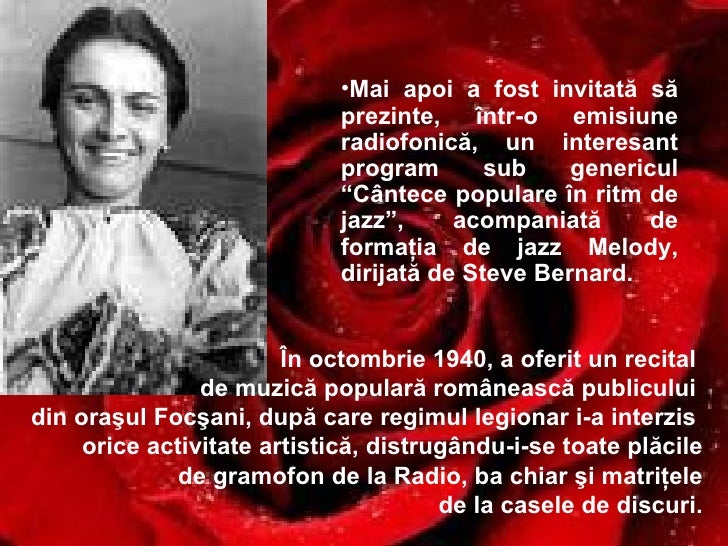 Born outside of bucharest, she studied at a romanian music school, the scola primara maria tanase. Maria tanase was a romanian singer who was famous for her renditions of both traditional romanian folk songs and more modern pop music.
